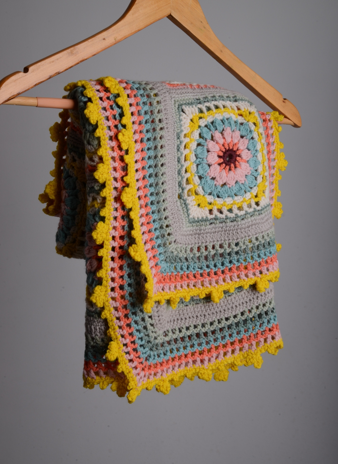 This blanket is simple to make. I have given yarn quantities for the border separately as it uses quite a lot and you may want to do something smaller.